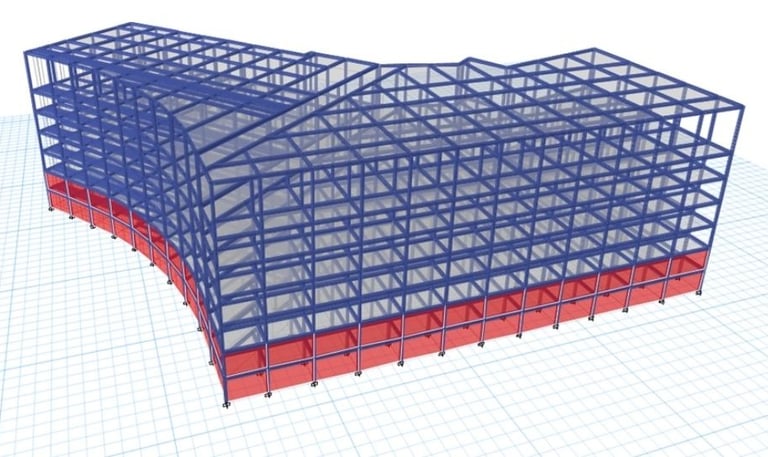 Edificación de gran escala con más de 47,000 m² techados en ocho niveles (cinco superiores y tres sótanos). El diseño aporticado, estabilizado con muros pantalla, garantiza seguridad sísmica y resistencia ante empujes de tierra. La solución combina eficiencia estructural, funcionalidad y seguridad para alta afluencia