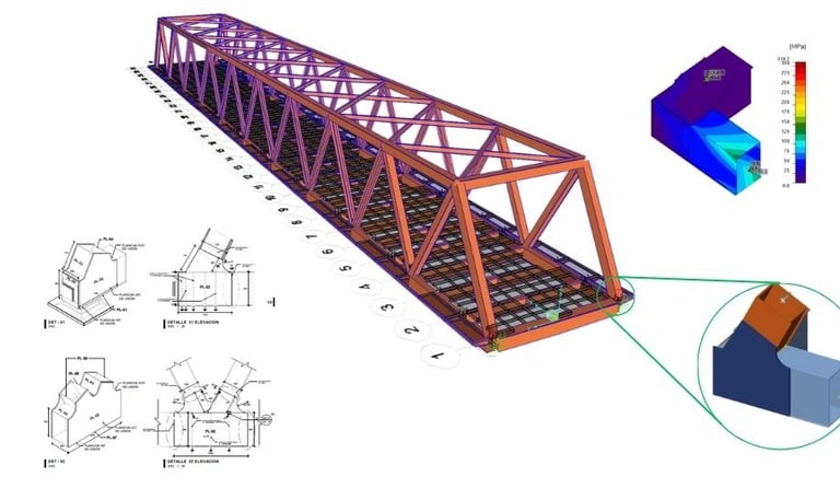 Diseño en viga cajón postensada de 160m de longitud, con aisladores sísmicos de núcleo de plomo. Solución de alta precisión bajo normas internacionales (AASHTO LRFD) , que garantiza seguridad y máxima eficiencia estructural en zona sísmica.