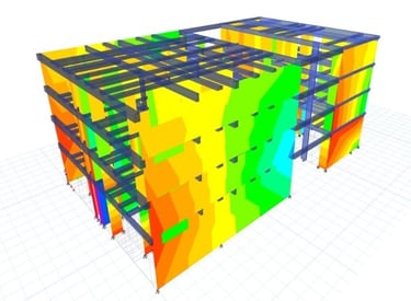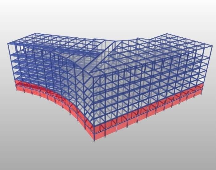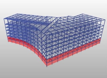 Diseño de la estructura para un edificio de 2000 m2 de área techada. El sistema de albañilería confinada optimiza la distribución de muros, garantizando un adecuado comportamiento ante cargas laterales y sísmicas. Se garantiza estabilidad, seguridad y eficiencia constructiva para entorno urbano