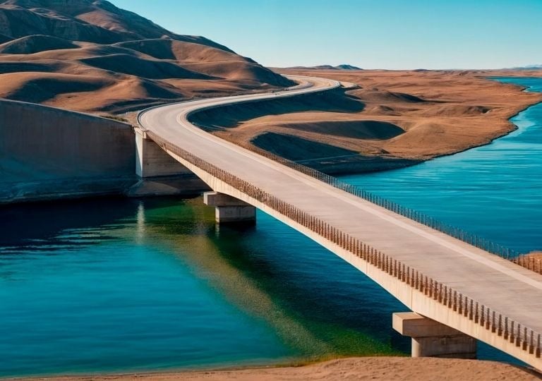 Diseño de viga cajón postensada de 51 metros con un solo tramo curvo. El modelamiento preciso controló los efectos torsionales, asegurando la estabilidad estructural ante condiciones sísmicas e hidráulicas exigentes.