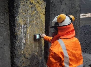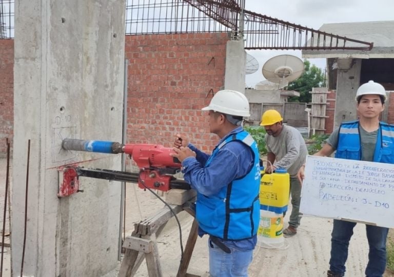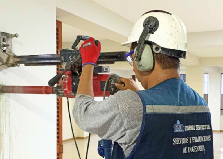 Inspección estructural (Método DCI) para verificar daños internos no visibles causados por maquinaria pesada. Se utilizó ensayo de ultrasonido para detectar grietas ocultas. El informe final definió el nivel de afectación y las recomendaciones para su reparación o refuerzo.