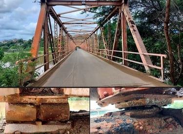 Evaluación estructural integral (Método DCI) del puente metálico reticulado. Se aplicaron ensayos mecánicos y no destructivos para determinar su capacidad resistente. El diagnóstico final emitió recomendaciones detalladas para su conservación y posible intervención estructural.