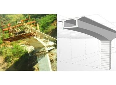 Puente de dovelas sucesivas de sección variable. Se ejecutó un riguroso control estructural de deflexiones en obra. Este control garantizó la precisión del proceso constructivo, la correcta alineación de las dovelas y validó el comportamiento estructural esperado del puente.
